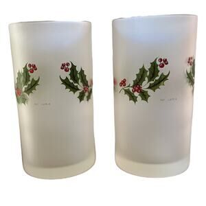 Set of 4 Cerve Frosted Holly Berry Christmas Holiday Highball Glasses
