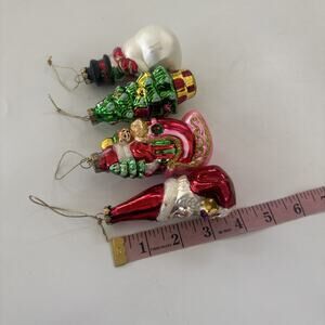 Set of 4 Christmas Ornaments by Greenbrier Santa Snowman Tree Blown Glass