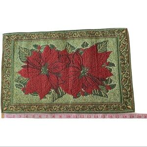 Set of 4 Christmas Poinsettias Cotton Blend Red Green Shimmering Metal 20”x12” Placemats. These placemats are preowned and in very good condition.