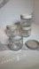 Set of four clear glass jars with white lids. Perfect for storage and organization.