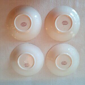 A delicate, beautiful pattern of an idyllic country scene in reddish pink with white background. Design is in the Asian style, with unusual gadrooned rim. This is the older version, but in excellent condition. Would look great in a wall grouping or as appetizer plates.