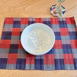 The striped pattern represent the sky and the earth. The pattern is interlaced with white, depicting fertility and growth.