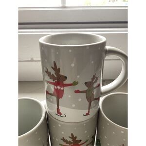 Set of 4 Crate & Barrel 12oz Ceramic Coffee Mugs Joan Anderson Skating Reindeer