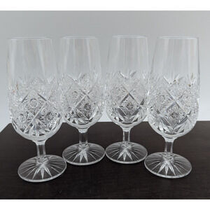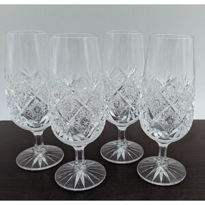 Set of 4 Cut Crystal Champagne Flutes Elegant Glasses Hobstar Fans 7"