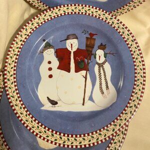 You are purchasing set of 4 Debbie Mumm Snowman by Sakura Salad Plates.
