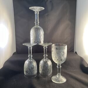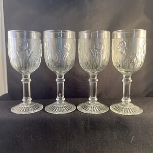Set of 4 Depression Jeannette Iris & Herringbone Clear 4 1/4" Wine Goblet 4oz