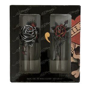 Set of 4 Don Ed Hardy 14 oz. HI-BALL GLASSES
