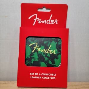 Set of 4 FENDER Multi-Color Collectible Leather Coasters NEW. Comes from a smoke free home.