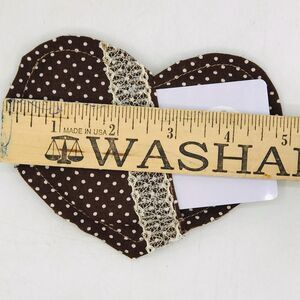 Hearts are sewn in decorative cotton fabric, have an attached pocket with trim or plain, and exposed seams that will give them a timeless look.