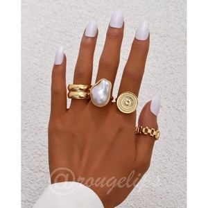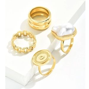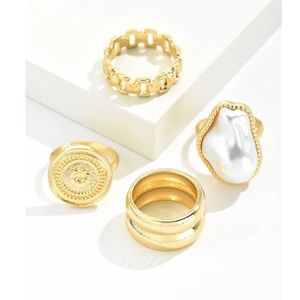 Set of 4 Fashion Rings Gold Tone Faux Pearl