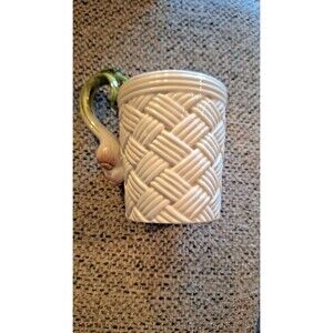 We are pleased to offer this beautiful set of four mugs from the Vegetable Garden Basket pattern produced by Fitz and Floyd in 1995. The mugs stand approximately 4 ¾ inches tall at the handle, and are in mint condition with no chips, cracks or scratches, in the original box. Each has a different design on the handle. They will display beautifully and will make a great addition to your collection.