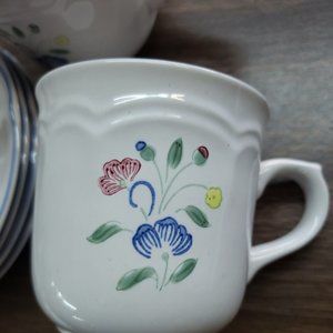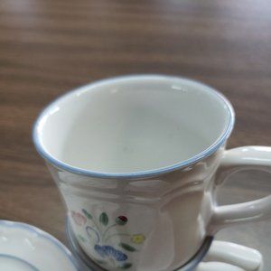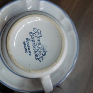 Set of 4 Floral Expressions Stoneware Coffee Tea Cups and Saucers Mexico
