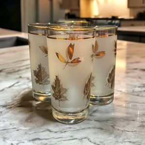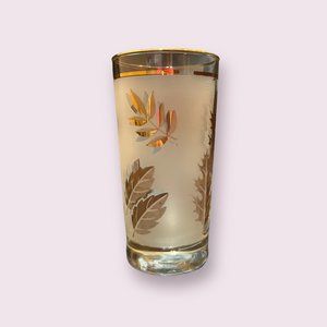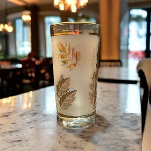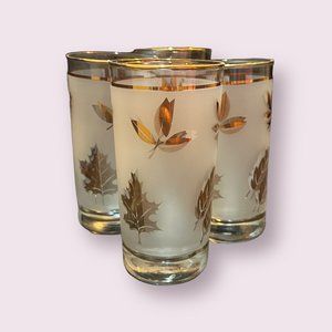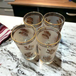 - Vintage set of 4 12oz drinking glasses with metallic gold leaves and frosted finish