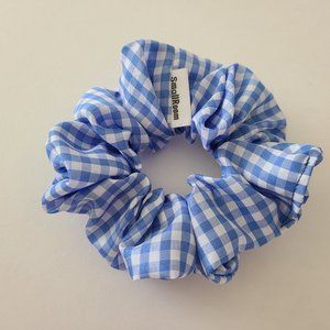 Set of 4 Gingham Scrunchies include pink, light blue, blue, and light purple.