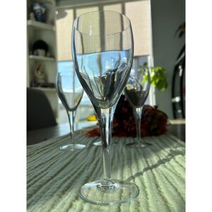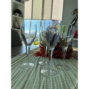 These elegant goblets are from the bygone era of the early 2000's, with a thick tapered stem and tulip shaped bowl. These goblets appear to be in excellent shape (but they are gently used) with no visible cracks, chips, or flea bites. This is a matching set of four white wine goblets that stand at 7 3/4 inches tall.