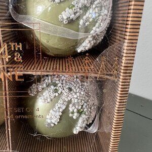 Set of 4 Green Glass Embellished Christmas Ornaments by 34th & Pine - 2-1/2"