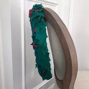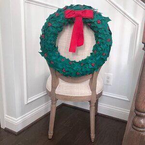 Set of 4 Green Holly Felt Wreaths Christmas Berries Bow Vintage Vtg