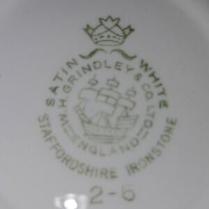 Set of four vintage English ironstone bowls by H. Grindley & Co., Staffordshire. These bowls feature a soft satin white finish with a subtle silver-toned rim and classic minimalist form. Each bowl measures approximately 5 inches in diameter, ideal for desserts, sides, or display. Marked on the base with the Grindley White Ironstone ship mark. Light surface wear consistent with age; silver trim shows expected wear. No cracks or repairs observed. A refined and versatile set that works well with both traditional and modern table settings. See photos.