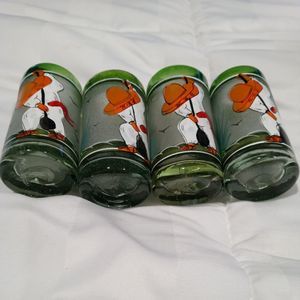 Set of 4 Hand blown Mexican hand painted shot Glasses