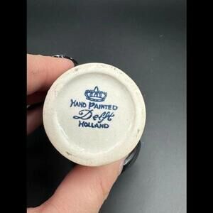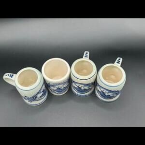 Beautifully crafted set of 4 miniature ceramic mugs featuring a classic windmill scene, hand-painted in Delft, Holland. These charming blue-and-white collectibles showcase intricate designs and authentic craftsmanship. Perfect for decor, collectors, or gifting! Excellent condition.