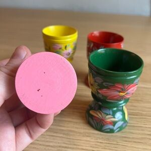 Set of 4 Hand-Painted Wooden Hungarian Farmhouse Egg Cups – Floral Vintage Decor
