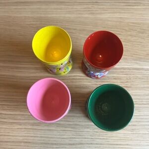 Bring rustic charm to your home with this set of 4 hand-painted wooden Hungarian farmhouse egg cups. Expertly crafted from wood, these egg cups feature vibrant colors—pink, yellow, green, and red—and delicate floral designs, showcasing the timeless beauty of traditional Hungarian craftsmanship. Perfect for holding soft-boiled eggs or as unique decorative pieces, these vintage-style egg cups are ideal for farmhouse kitchens and rustic tablescapes.