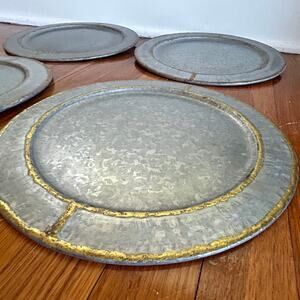 Set of 4 Hearth & Hand Magnolia Galvanized Chargers w/ Gold Accents