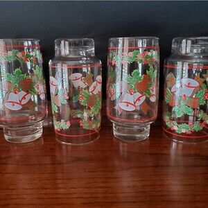 Set of 4 Holly Jingle Bells Christmas Holiday Glasses