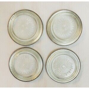 Set of four 4" silverplated and glass coasters by International Silver Co.
