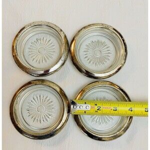 Set of 4 International Silver Co. Silverplate & Glass Coasters 4" VTG Hong Kong