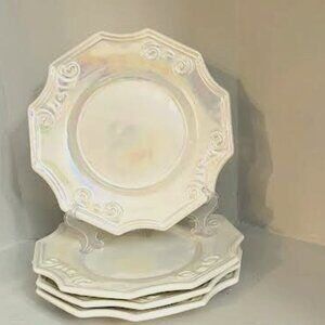 Set of 4 Italian Luncheon Plates White Iridescent Pearlized Scalloped Edges