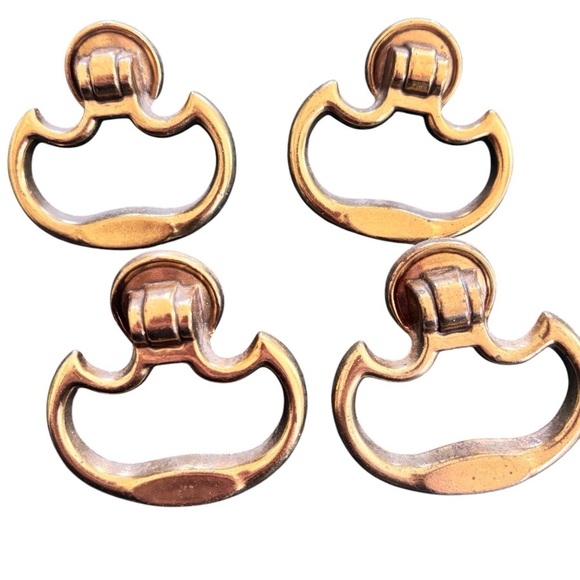 Set of 4 Late 20th Century Brass Cabinet/Drawer Pulls 2.25X2.5” Replace Upcycle