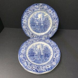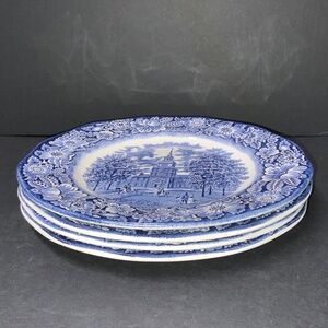 Set of 4 Liberty Blue Staffordshire Independence Hall 9 7/8 Dinner Plates - EUC!