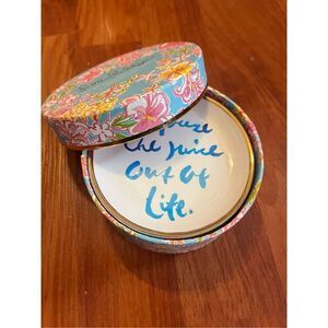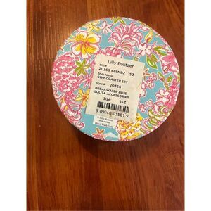 Set of 4 Lilly Pulitzer Ceramic Gold Rim Coasters 3.75" BREAKWATER BLUE LOLITA