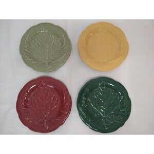 Set of 4 Longaberger Falling Leaves Small Ceramic Pottery Plates Collectable