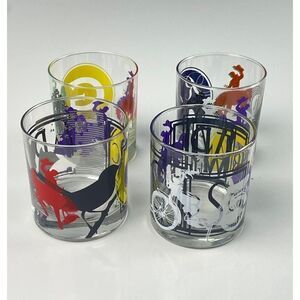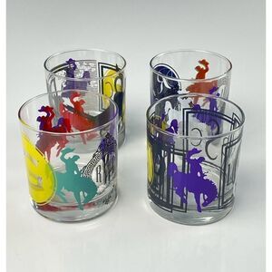 Set of 4 Lowball Whiskey Short Tumbler Glasses Bucking Bronco Monogram Barware C