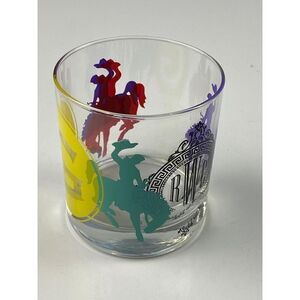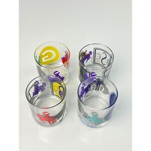 Set of 4 Lowball Whiskey Short Tumbler Glasses Bucking Bronco Monogram Barware 3.5in