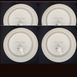 Set of 4 Lulu DK Leaf Salad Plates Porcelain Green White