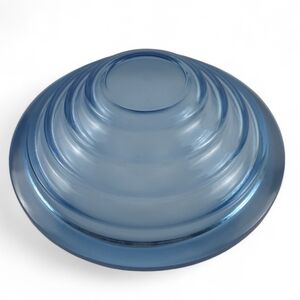 Set of 4 MCM soup bowls. Stepped shape on the outside and rounded on the inside. Made of a colbalt blue glass. Thick and somewhat heavy. They measure 7.25" in diameter and 2" tall. No chips. In excellent condition. Items will ship securely in bubble wrap.