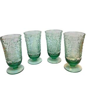Set of 4 Mikasa Studio Nova āHoliday Cheerā Glasses Vintage Green Textured Tumb