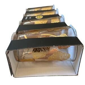 Set of 4 Moroccan Tea Glasses Hand Painted Gold Floral Motif 6oz New