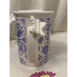 Set of 4 Mugs / Cups, Coffee / Tea, Floral pattern with 3-D Butterfly on handles