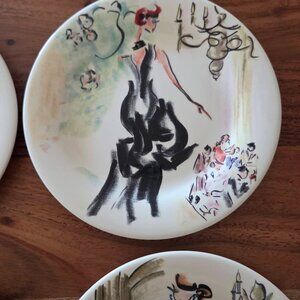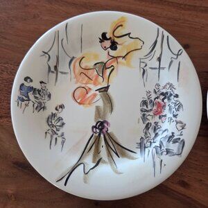Brand new in box. These 4 assorted appetizer/canape plates by Gien France feature the fashion ladies.