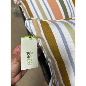 Set of 4 NEW Decorative Throw Patio Pillows Rectangular Stripe Brown Blue