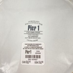 Set of 4 NEW Porcelain PIER 1 CELEBRATION Dinner Plate 10 1/2”