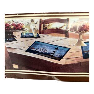 Set of 4 Nautical Lighthouse & Sailboat Tapestry Placemats – P.P. Home Collection – 13 x 18 in – Cotton Blend – New