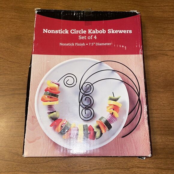 Set of 4 Nonstick Circle Kabob Skewers 7.5 Inches Diameter Great American