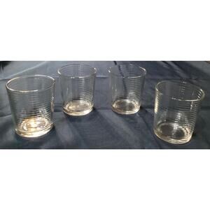 Set of 4 Pasabahce Horizontal Rings Rock Glasses Low Ball Tumblers 4”