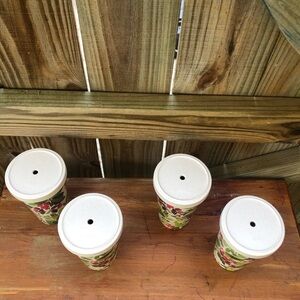 Set of 4 Patina Vie Holiday Holley Berry Bamboo Travel Tumblers & Lids Size 16oz