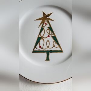 Set of 4 Pier 1 Porcelain Christmas Tree Salad Plates